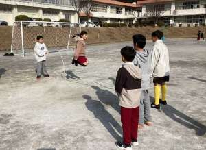 1月21日の全校なわとび集会に向けて、縦割り班でのなわとびの練習がスタートしています。業間などの休み時間を使い、6年生の子どもたちが中心になって練習を続けています。今日の練習でも、6年生が下級生の子に大縄に入るタイミングを教えたり、「こうするといいよ」とアドバイスをしたりする姿がみられました。なわとび集会では、特別賞として、「応援賞」や「協力賞」があります。協力し、励まし合う子どもたちの姿を大切に、集会を迎えたいと考えています。