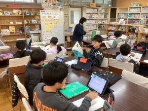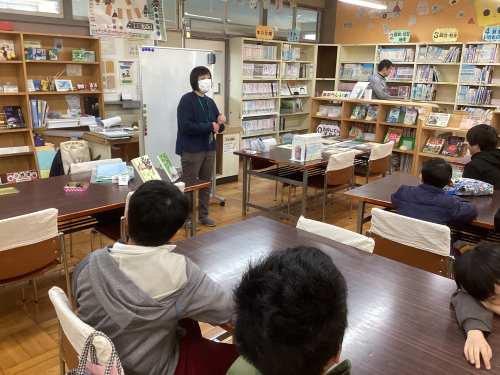 本日、「学校図書館アドバイザー」による学校図書館を活用した授業を行いました。2年生は「POPで本を紹介しよう」、3年生は「百科事典の使い方」、5年生は「椋鳩十の作品に親しもう~関連:国語『大造じいさんとガン』~」をテーマとして、読書の習慣化や調べ学習の基礎について学ぶことを目標に、学年に応じた学習をしました。また、本日は学校司書も来校し、子どもが読みたくなるような本の展示をしたり、壊れた本を直したり、学校図書館の整備をしたりしてもらいました。本校は、本の貸し出し数は高い数値であるものの、「読書が好き」と回答する児童の割合は年々少なくなっている傾向にあり、課題となっています。日常的な取り組みはもちろんのこと、本日のように、専門職である「図書館アドバイザー」や「学校司書」と連携し、読書に親しむ子どもの育成を図っていきたいと考えています。