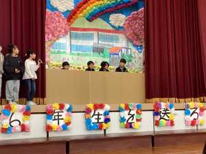 2月20日、「6年生を送る会」を行いました。今日を迎えるにあたって、1~5年生の皆さんが、出し物の練習やプレゼントの作成など、たくさんの時間をかけて準備をしてくれました。特に5年生の皆さんは、会の企画から運営まで、中心となって活躍してくれ、「6年生を送る会」を大成功に導いてくれました。これも、6年生の皆さんのこれまでの優しやや頼もしさが、下級生にしっかりと伝わっていたからこそ、本日のような温かい会ができたのだと思います。