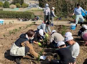 3月15日(水)に3年生が校区内のお茶畑にお茶の苗木を植樹しました。