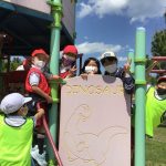 5月2日(月)、鈴鹿の江島公園へ全校遠足に行ってきました。 公園に着き、海が見えると、子どもたちはハイテンション! 「海やー!」「貝拾っていい?」「砂持って帰っていい?」と 声をあげて喜ぶ姿が見られました。 なかよし班ウォークラリーでは、班の仲間との仲を深めることを目的に、 宝探しやリレーなどのゲームに挑戦しました。 6年生が中心となり、班ごとに楽しみ、がんばる姿がありました。 ウォークラリーの後は、「まってました!」お弁当の時間でした。 「見てみて!」と作ってもらったお弁当を沢山の子どもたちが見せてくれました。 朝早くからのお弁当づくり、ありがとうございました。 お弁当を食べた子から自由に公園で遊びました。誘い合って遊ぶ姿が見られました。 楽しい遠足になったかなと思います。