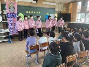更生保護女性会とは、女性の立場から、地域における犯罪予防の活動や子どもたちの健全育成のための子育て支援活動などを行うボランティア団体です。3月24日、亀山更生保護女性会の皆様にお越しいただき、1・2年生を対象に、更生保護の活動の紹介をしていただきました。また、その後には交流会ももちました。