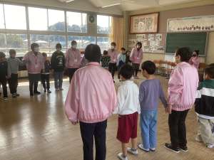 お話を聞く中で、困ったり悲しい思いをした時に支えてくれる方々が、地域にたくさんいらっしゃるということを知って、子どもたちは安心感を抱いた様子でした。また、交流会では、一緒に「はないちもんめ」をして楽しい時間をもつことができました。