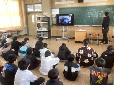 年間を通して「かしのひオンライン」で交流している市内の昼生小学校は、三重県教育委員会による「現代的諸課題に関する教育推進事業」に係る実践校として、地域とともに校区の未来を創造する取組を進めています。2月9日、県内の実践校の取組を発表するオンライン交流会が開催されました。今回、そのオンライン交流会を「かしのひオンライン」と兼ね、本校も、昼生小学校はじめ県内の実践校の取組の発表をオンラインで視聴しました。昼生小学校の取組発表では、先日のおはぎづくり体験でお世話になった昼生地区の和菓子屋「生甘堂」さんと昼生小学校とが連携した取組が発表され、本校の子どもたちは、親近感を覚えて視聴していました。昼生小学校が、学校の特色を活かして商品開発をしていることを知って、驚いた様子でした。本校の取組にも活かせるヒントがいっぱいで、子どもたちにとってもよい刺激になりました。