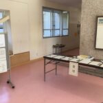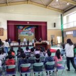 いよいよ明日に迫りました。最後の仕上げ練習です。でも、あいにくの雨模様で運動場が使えませんが、外で応援練習をしたいと思い、雨の合間を縫って玄関前の舗装部分を使って赤白に分かれて練習しました。距離が離れているので、大きな声でエール交換ができました。本番が楽しみです。