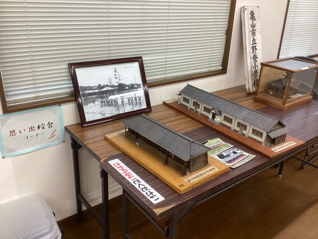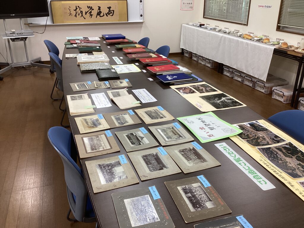 10月25日の創立150周年式典当日に、野登小学校会議室(サポートルーム)に、学校に保存してある写真等を展示します。今日はその準備をし、たくさんの写真を並べました。学校には、一番古いもので、明治37年(1904年)の集合写真があります。写真の古さと多さに、150年の歴史を感じます。当日は会議室を「ののぼり 思い出ルーム」と名付け、昔の入学式や卒業式の集合写真や卒業アルバム、校舎の模型、昔の給食のレプリカ、PTA新聞「りんどう」などを展示します。皆様に昔を懐かしみ、楽しんでいただけたらと存じます。また、多くの地域の皆様にご覧いただけるよう、11月30日(日)に開催される「ののぼりのみんな よってかんせマルシェ」でも、展示します。ぜひ、お立ち寄りください。