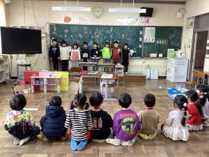1月23日、新入児の学用品販売と並行して、来年度入学予定の子どもたちを野登小学校に招待し、体験入学会(1年生との交流会)を開催しました。1年生は、「小学校への入学が楽しみ!」と思ってもらえるよう、心を込めて遊び場(「おもちゃランド」)を考え、準備してきました。当日は、さすが1年先輩です。来年度入学予定の子どもたちに優しい声かけをして、「おもちゃランド」でもてなしてくれました。また、来年度、最上級生となる5年生とも顔合わせをしました。4月の入学式に会えるのを在校生も教職員も心から楽しみにしています。