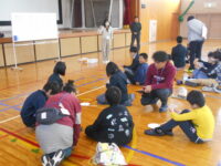 加太小学校、関小学校のこどもたちが関中学校に来て、交流学習会を持ちました。自己紹介の後、紙皿ブーメランやバタバタストローを作って、みんなで遊びました。子どもたちはとても楽しそうにしていました。