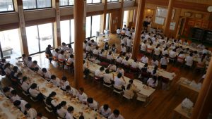 ↓昼食時の多目的ホール。全校が集まる「ランチルーム」になります。