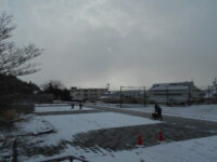 朝、学校に来るとグランドに雪が積もっていました。子どもたちは雪合戦と雪だるまづくりをして遊んでいました。とても元気です。