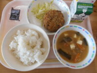 手作りのとってもおいしいコロッケでした。いつもおいしい給食をありがとうございます。