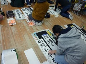 書き初めを練習しました。「伝統を守る」と6年生は書きます。