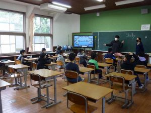 4月14日(水)5・6年生 英語 投稿日時: 2021年4月14日 投稿者: shirakawa ◎2021(令和3)年4月14日(水) 新しいALTの先生に来ていただき、今年度初めての英語を学習しました。初めは自己紹介を先生も子どももしました。
