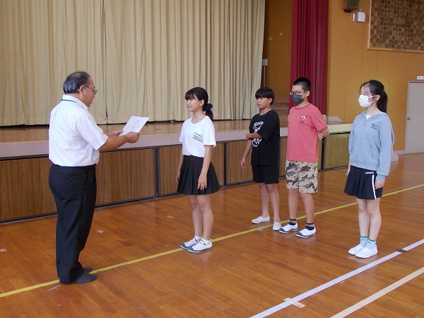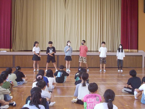 4月の始業式・入学式で始まった令和6年度も、10月に入り1年の半分が経過し、今日から後半に突入です。早いものですね。昨日の「白川っ子タイム」では、後期児童会役員・委員長・学級委員の任命式のあと、前後期の役員からの挨拶があり、様々な活動が後期の役員・委員へと引き継がれました。全校児童41名全員で、より良い白川小学校をつくり上げていきましょう。また、各学年代表児童から「いま頑張っていること」スピーチが行われたり、後期児童会役員による全校レクでは、赤白2班に分かれて「ぞうきん落とし」で楽しいひと時を過ごしたりしました。