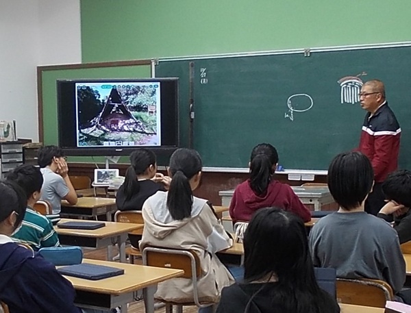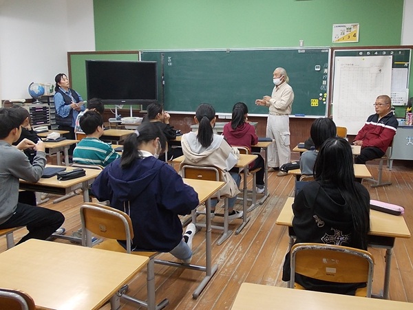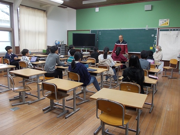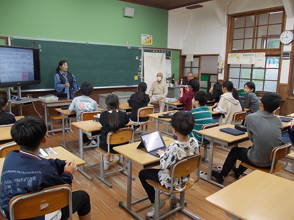 10月27日(月)4限目、5・6年生が「炭焼き」講師の浅野重信さん・川合正男さんから、白川小学校で行われている「炭焼き体験学習」の歴史等について学びました。白川地区では昔、炭焼きが盛んに行われていたことから、「総合的な学習の時間」の学習に取り入れようと平成13年に校地内に炭焼き窯をつくり、本校での炭焼きが始まりました。しかし、当時の講師の方の高齢化や炭焼き窯の老朽化などにより、平成19年まで行われた炭焼きは一旦中断しました。これを平成30年に川合元校長先生が地域の方と一緒に修復し、炭焼きを再開して現在に至っています。地域の方々の協力を得ながら焼き上げた炭は、子どもたちの手でパッケージングされ、地域の「明星祭」などで販売されたり、亀山市の「ふるさと納税」返礼品となったりしています。こういった歴史や地域の皆さんの思いなどを講師のお二人から説明していただきました。炭焼き窯の構造など、なかなか中に入って見ることのできない部分まで詳しく説明してもらい、子どもたちも「へ~」と興味深げでした。授業に先立って、10月中旬には地域で伐採した原木を搬入いただき、本年度の炭焼きの準備が着々と始まっています。