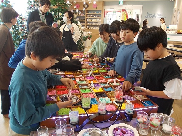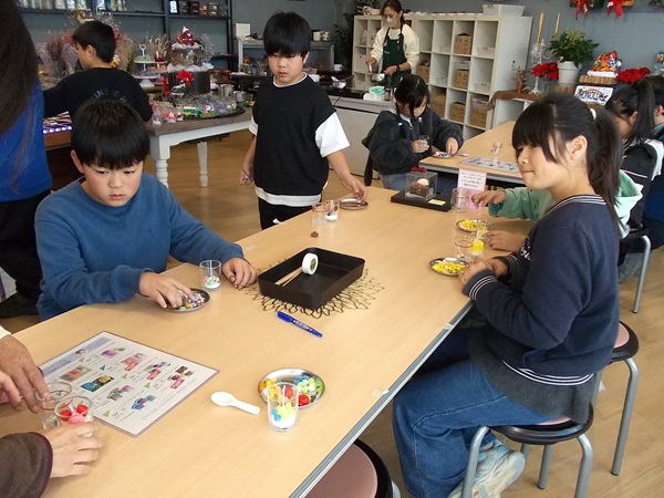 12月9日(火)2・3限目に、3年生がカメヤマローソクタウンへ工場見学に行ってきました。まず始めに、「キャンドルワークショップ」で手作りキャンドル体験をしました。器に思い思いの飾りを入れて、子どもたち一人ひとりのオリジナルキャンドルをつくりました。素材を入れすぎては戻したり、違うものに取り換えたりと工夫をこらしていましたね。その後、工場見学では、モニターの説明を聴いたり工場内の様子を窓からのぞき込んだりしながら、熱心に見学をしていました。ローソクの品質にこだわり芯糸を自社で開発・製造するなど、亀山が世界に誇る「カメヤマローソク」に凝らされた工夫やローソクづくりにたずさわる方々の思いに触れることができた1時間でした。