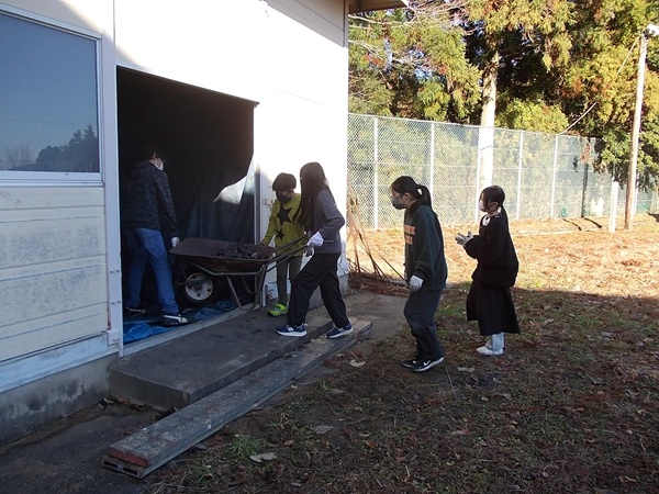 12月22日(月)1限目、二学期の終わりを目前にひかえ、本年度最後の「窯出し」を5・6年生が手伝いました。炭焼き講師の浅野重信さま・川合正男さまを始め、地域の方々のご協力をいただきながら、今回もとても良い「炭」が焼き上がりました。本年度の「炭焼き」は今回で終了です。空になった窯は壁を補修して、来年度の「炭焼き」に備えます。年明けには、今年焼きあがった炭を子どもたちがパッケージングして「白川の炭」として販売します。販売は、1月17日(土)土曜参観の1限目と、2月1日(日)白川地区明星祭にて予定しています。数量に限りがありますので、売り切れの際にはご容赦をお願いします。