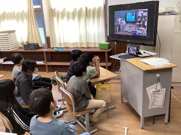 12月5日(金)3限目に、本年度3回目となる市内複式4校のオンライン交流を行いました。今回は、加太小の発表を白川小・野登小・昼生小の子どもたちが聴いて、感想やより良い発表にするための助言などを行いました。白川小は、3・4年生の児童がそれぞれの教室から参加し、加太小の子どもたちが創立150周年記念式典で発表した「加太小学校の過去と現在」の内容を聴いて、感想などを伝えていました。次回は1月に白川小学校がホスト校となり、本校の取り組みについて発表する予定です。