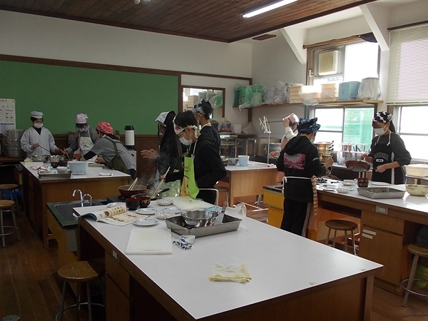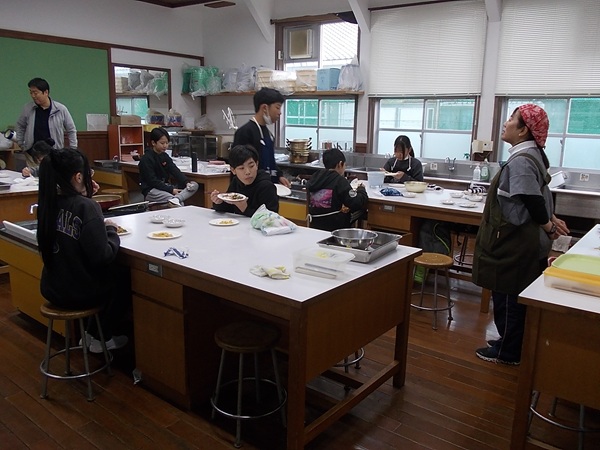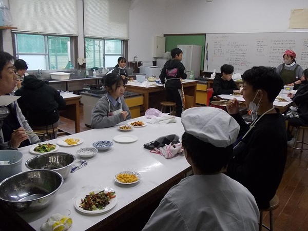 12月15日(月)1・2限目、良い匂いに誘われて家庭科室をのぞいてみると、6年生が家庭科の調理実習を行っていました。作っていたのは「ベーコン入り野菜いため」と「スクランブルエッグ」です。一人ひとりがフライパンを持ち、火加減をみながらぎこちない手つきで調理に取り組んでいました。出来上がった料理を口にすると、もう少し塩を足すとか冷たくなったから「レンチン」するとバタバタ。普段、家庭で美味しくてあったかいご飯がいただける有難みを感じたのではないでしょうか? ぜひ、お家でも今回の料理をつくって、ふるまってみてください!