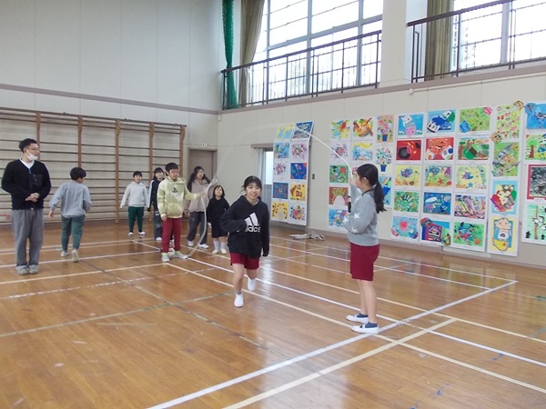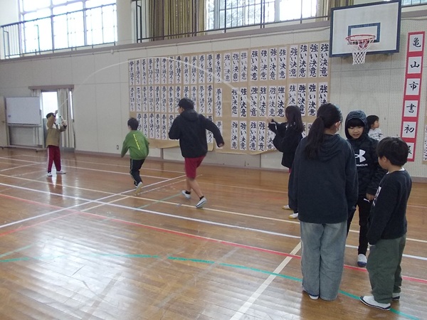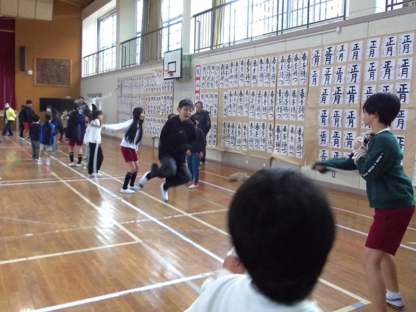 白川小学校では「室内で過ごすことが多くなる冬の時期に、適度な運動を行う機会を意識的につくることで体力と免疫力を高め、寒さや病気に負けない体をつくる」ことをねらいとして、「全校向寒運動」に取り組んでいます。11月28日(金)から12月15日(月)までの期間は「かけ足」に取り組みましたが、1月14日(水)からは「大繩跳び」に取り組んでいます。月・金曜日の業間と水曜朝の体育タイムの時間に、体育館でなかよし班(縦割り班)ごとに「大縄跳び」の練習を行い、最終日には3分間で大繩を「8の字跳び」で何回跳べるかを競う予定です。なかよし班で目標を決め、記録を伸ばせるように友だちと力をあわせて取り組んでいます!