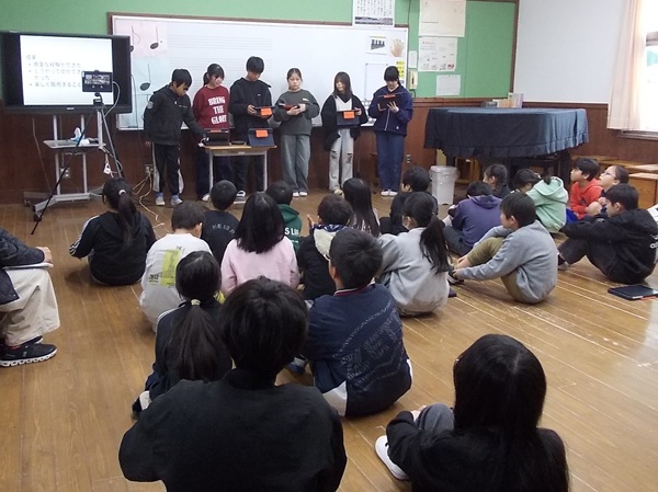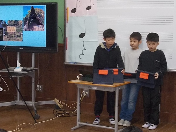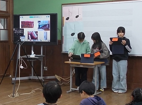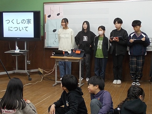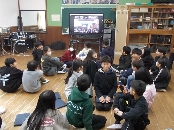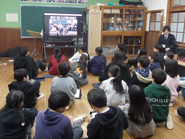 1月30日(金)3限目、市内の複式学級を有する小学校4校をオンラインでつなぐ交流会が行われました。今回は、白川小学校がホスト校となり、昼生小・野登小・加太小の子どもたちに白川小の良いところや活動について紹介しました。まず3・4年生から、白川小学校の良さとして「国の登録有形文化財となっている校舎」「グランドにある炭窯・ピザ窯」「全校で取り組む小中音楽会や遠足」について発表しました。クイズなどもはさみながら、視聴している人の興味をひくような工夫をこらしていました。5・6年生からは白川小の活動として「つくしの家との交流」「炭づくり」について発表しました。どちらも長く続いている取組ですが、子どもたちは「これらの活動を通して人や地域とのつながりを感じることができた。これからも続けていきたい。」とまとめていました。上級生になるほど、発表もはきはきと大きな声でできていましたね。1・2年生も同じ教室で、お兄さん・お姉さんたちの発表を興味深くきいていました。次回は、昼生小学校からの発表の予定です。