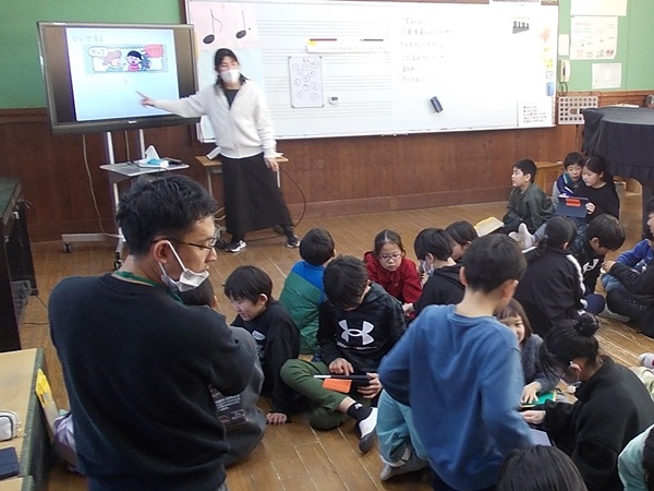 2月4日(水)5限目、全校児童が音楽室に集まり「すみがく」を行いました。白川小学校では全校一斉で行う人権学習を、「自分の素を磨く」という意味を込めて「すみがく」と呼んでいます。この日の「すみがく」では、「ことばのもつ力」をテーマに “ふわふわ言葉” と “ちくちく言葉” から受ける印象の違いや、 “ちくちく言葉” をちくちくしない言い方に言い換えるグループワークなどを行いました。子どもたちは、3~4人のグループに分かれて話し合いながら、「こう言ったらいいのでは?」と意見を出し合っていました。優しい言葉で気持ちを伝えあえる白川っ子であって欲しいですね。
