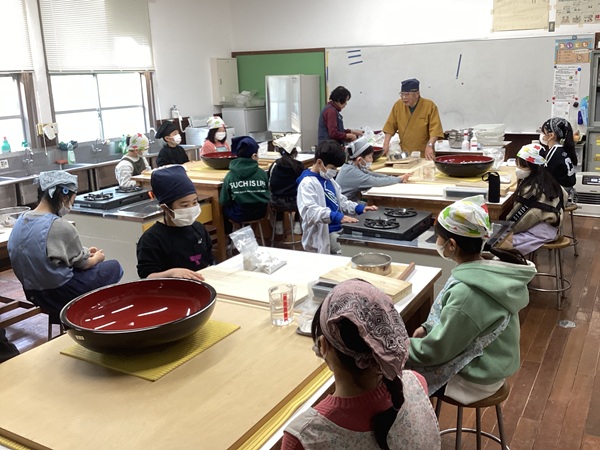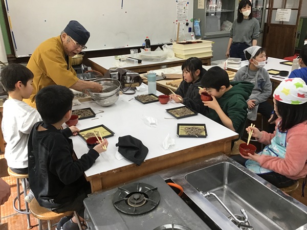 3・4年生が「そば打ち体験」をしました