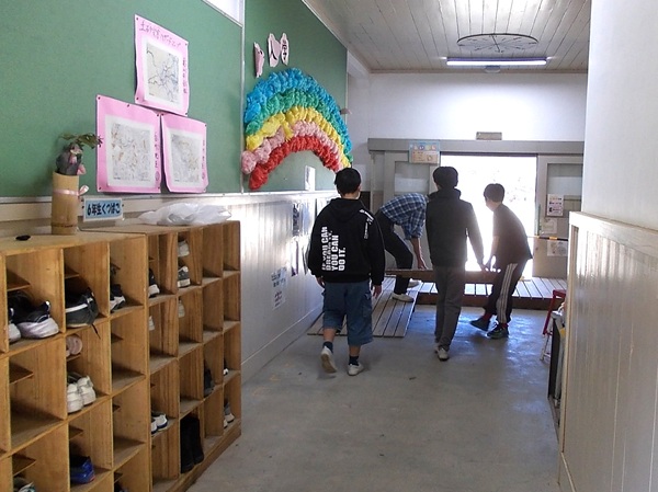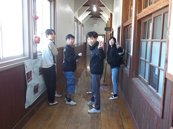 3月12日(木)5・6限目、一週間後に卒業をひかえた6年生が、これまでお世話になった校舎への感謝を込めて「奉仕作業」を行いました。5限目は、板張りの廊下のワックスがはげてツヤが失われてきていたので、2グループに分かれて廊下を中心にワックスがけを行いました。また、6限目は中庭の落ち葉掃除などを中心に作業を行いました。子どもたちはワイワイと楽しそうにしながらも熱心に作業に取り組んでいました。