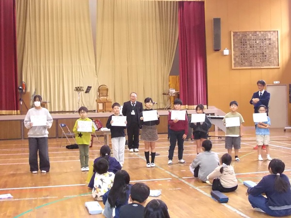 11月4日(火)1限目、全校児童が体育館に集まり11月6日に行われる「第75回亀山市小中音楽会」に向けて「八木節」の練習を行いました。当日の会場での座り方や入退場の仕方の確認などもあわせて行いました。子どもたちの演奏も、ほぼ仕上がってきています。あとは、本番で力を発揮してくるだけですね!! お時間がありましたら、保護者の皆さまもご観覧をよろしくお願いいたします。