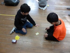 冬休みの宿題で、百人一首を覚えてきました。もうすぐ百人一首大会があるので、練習をしました。