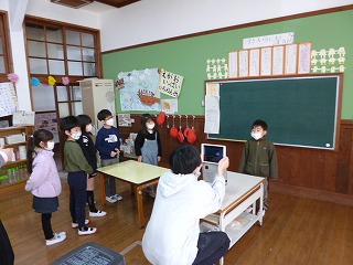 2月22日(火)1・2年生 学活 投稿日時: 2022年2月22日 投稿者: shirakawa ◎2022(令和4)年2月22日(火) 1年生と2年生が、6年生へのメッセージを録画しました。3月には、順次6年生へメッセージを伝えていきます。
