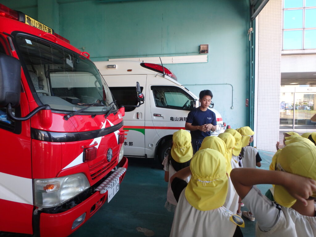 バスに乗って亀山市内のいろいろな所を見学しました。亀山消防署~第一愛護園~亀山駅~図書館~カメヤマローソクタウン…行くところ行くところそれぞれ、子どもたちは新鮮で目をキラキラさせていました。各所ご協力いただき、ありがとうございました。自分たちの住む街「亀山」には素敵なところがいっぱいです!