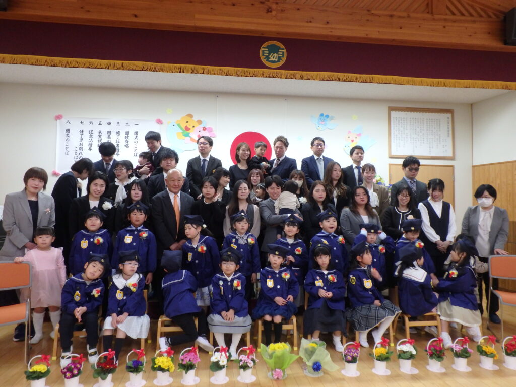 17人の年長さん、幼稚園の過程を修了し、一人一人が立派な姿で巣立っていきました。楽しかった幼稚園での思い出をたくさんもって、小学校へ進みます。みんな元気で頑張ってね。