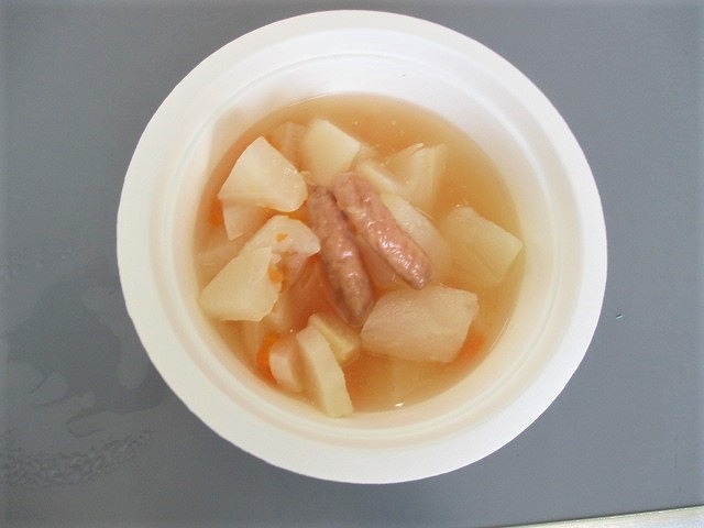 28日、井田川幼稚園で収穫したかぶを使用し、だいこんやにんじんなどをたくさん入れたスープづくりをしました。「かぶがやわらかくて、おいしい!」「あったかぁ~い」「いいにおい」など、子どもたちの嬉しそうな表情が見られました。