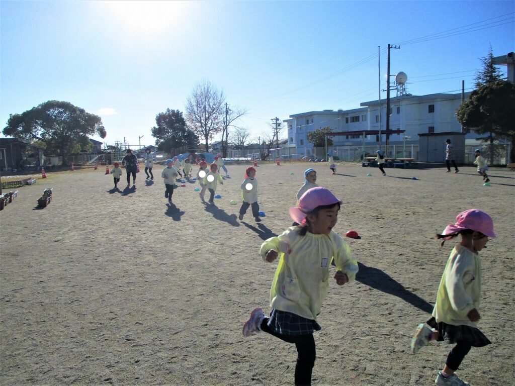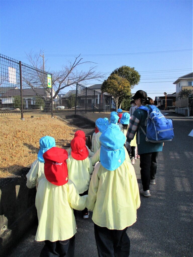お別れ散歩として、東公園(みずほ台)に出かけました。道中では、子ども交通安全教室を実施しながら、しっかりと安全確認を行うことができました。公園では、さまざまな遊具で遊んだり、集団遊びを楽しんだりしました。また、三学期のまとめとして、避難訓練(地震)や環境デーも行いました。