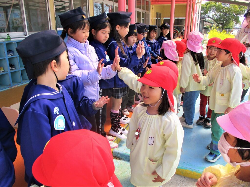 年少・年中児が協力し、『お別れ会』を開催しました。もうすぐ卒園する年長組のお兄さん、お姉さんに向けて、リズム表現の発表や感謝のことばを伝えました。また、年長児が経験したオペレッタや踊りをみんなで楽しみました。心を込めて作ったプレゼントを渡すと、とても嬉しそうな表情で受け取る年長児の姿に心が温まりました。年長児からも歌やことば、収穫した種のプレゼントがあり、微笑ましい雰囲気のお別れ会でした。その後は、昼食やおやつバイキングを楽しみ、思い出に残る一日となりました。