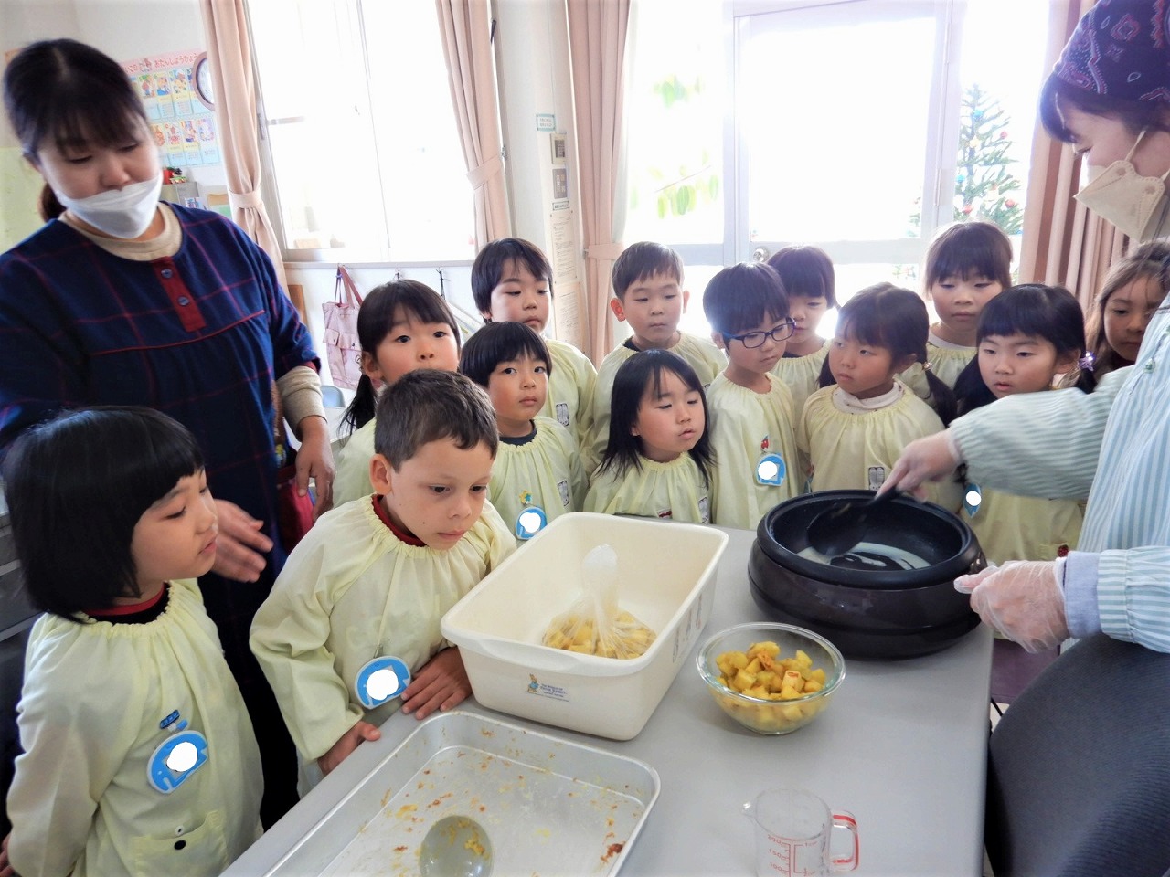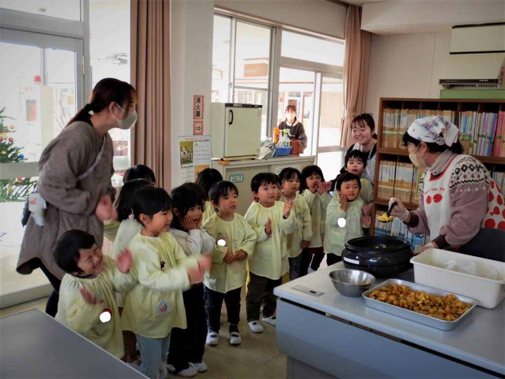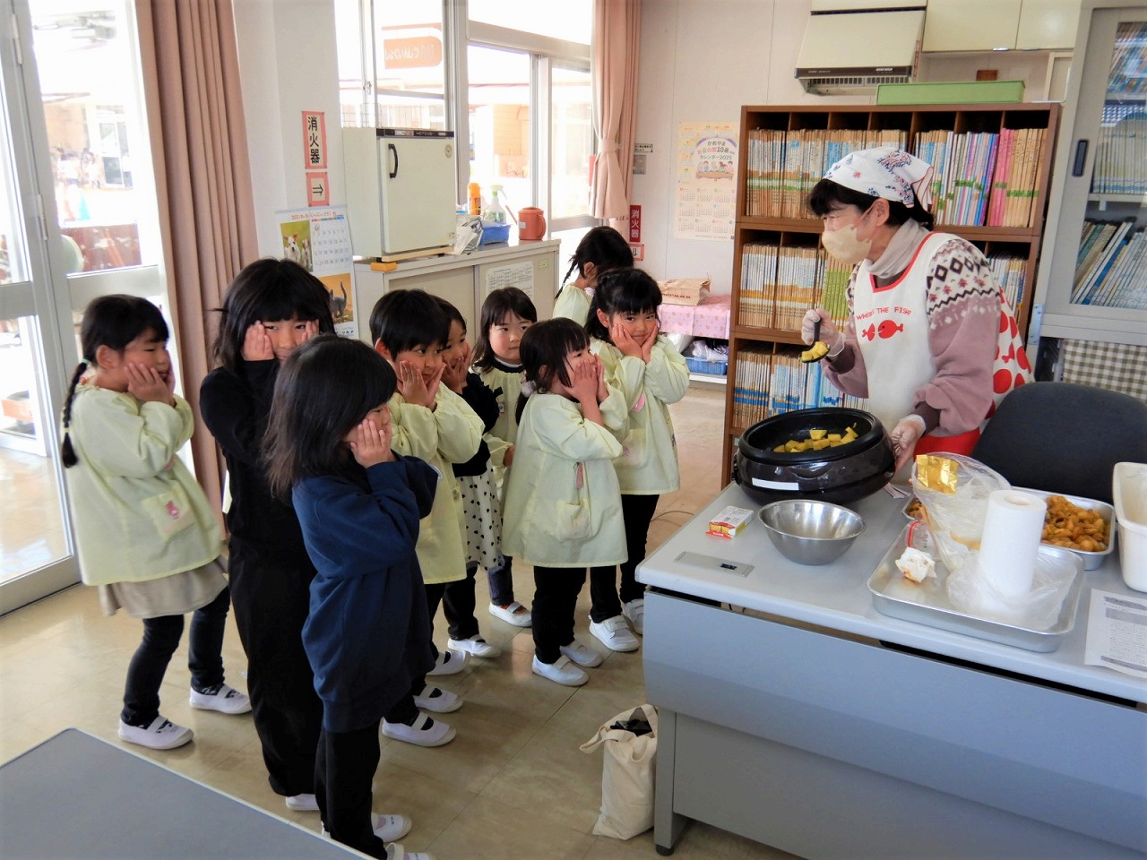 井田川幼稚園・みずほ台幼稚園、それぞれの園で収穫したさつまいもを使用して、9日に『コロコロさつまいものバター焼き』を作りました。前日には、年長児がさつまいもをきれいに洗い、準備をしました。「おいしいね!」「おかわりは?」など、子どもたちは笑顔いっぱいの表情で味わっている様子が見られました。