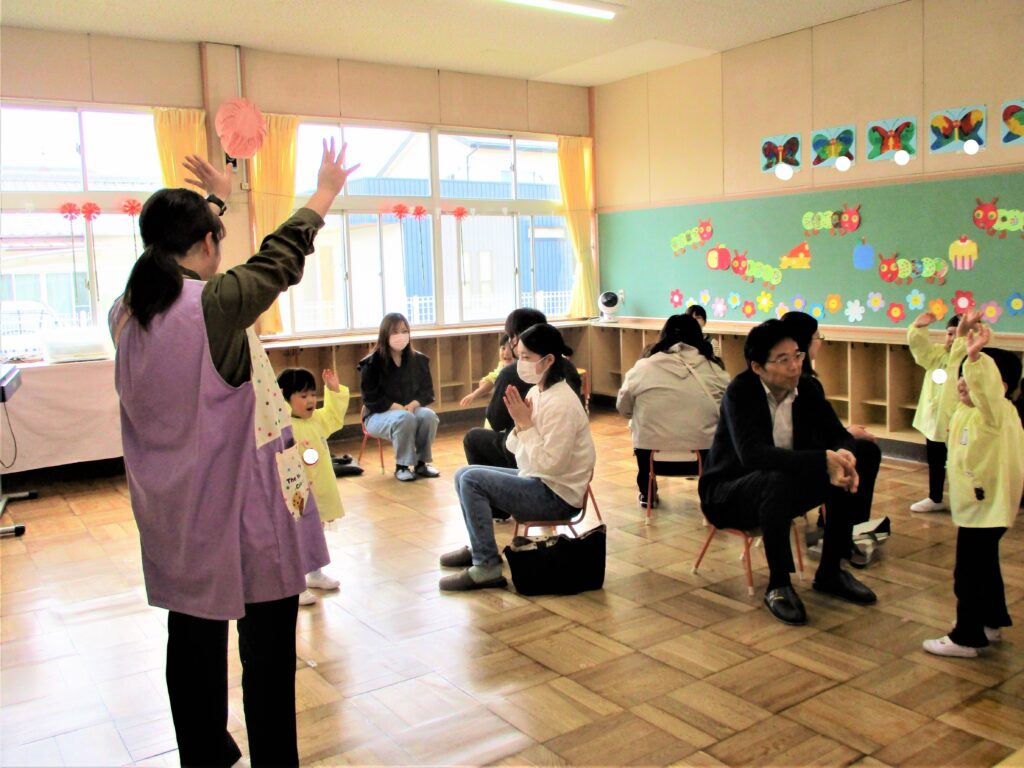 進級・入園後、初めての保育参観を行いました。歌や体操、リズム遊びを見ていただいたり、フルーツバスケットを楽しんだりしました。また、親子でこいのぼり製作にも取り組みました。お家の方の温かいまなざしに、どの子も笑顔いっぱいで、とても嬉しそうでした!