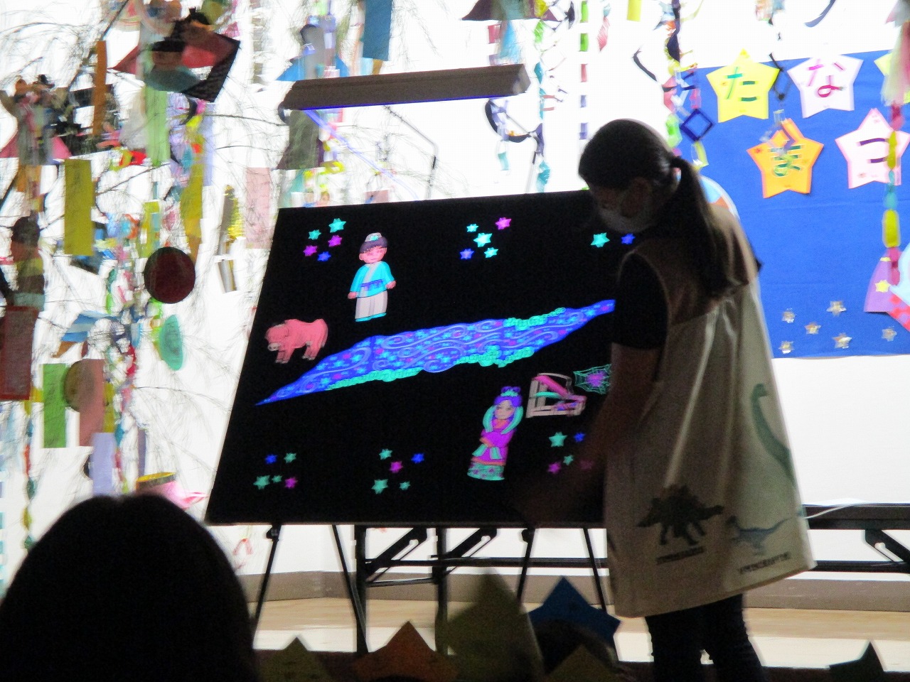 七夕まつり☆☆☆ 投稿日時: 2021年7月7日 投稿者: yidagawa 7月7日は七夕、幼稚園でも七夕まつりを楽しみました。ふれあいデーに来てくれたお友達も一緒に参加してもらいました。 子どもたちが作った七夕飾りは、前日にお家の人と一緒に笹に飾り付けをしました。みんなの飾りが集まり、それはそれは綺麗な色鮮やかな笹飾りとなりました。そんな笹飾りを見ながら、みんなで歌を歌ったり、七夕クイズをしたり、パネルシアターを見たりして楽しいひと時を過ごしました。今日はあいにくの天候ですが、きっと空の上で、織姫様と彦星様は一年ぶりの再会を喜んでいることでしょう。みんなの願い事もお星さまに届きますように・・・・・