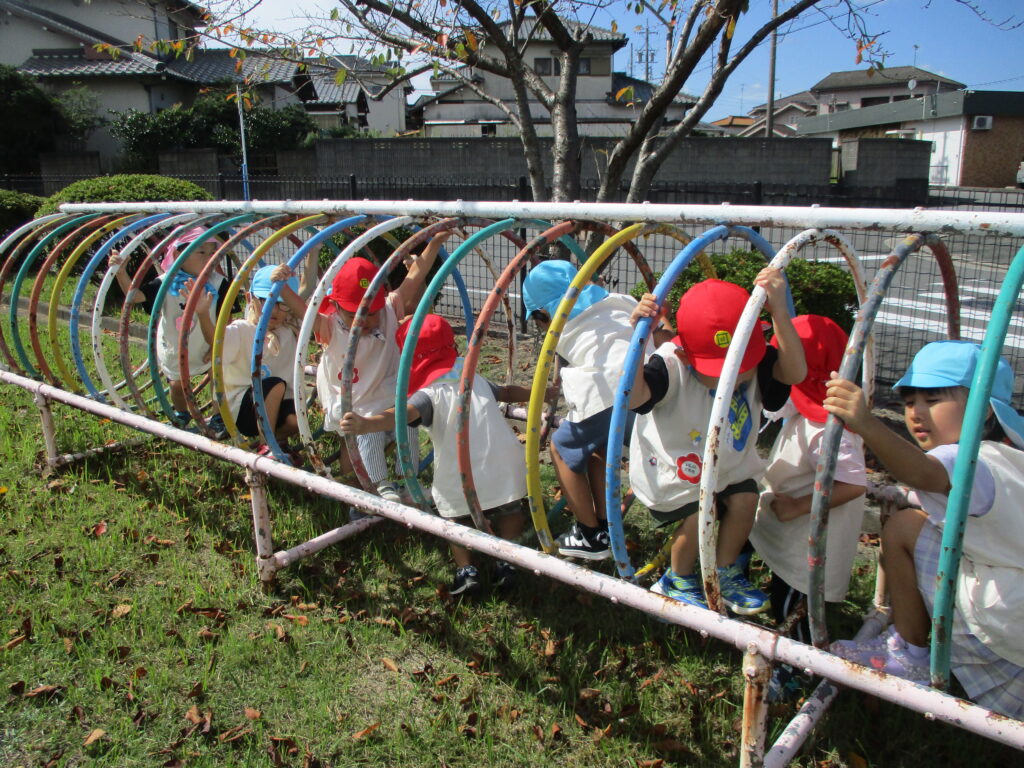 園外散歩で秋を見つけたよ! 投稿日時: 2023年10月2日 投稿者: yidagawa 本日、異年齢の友達とワクワクしながら、みどり町内にある三角公園に園外散歩に行きました。公園内では、赤とんぼやバッタ等を見つけました。また、もみじや木々の葉が、秋の色に色づいている様子も発見しました。遊具で遊んだり、鬼ごっこをしたりして、楽しく過ごすことができました。