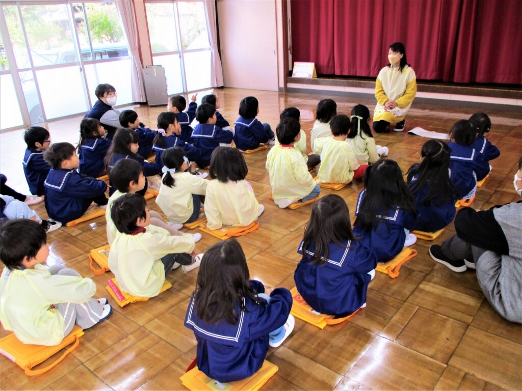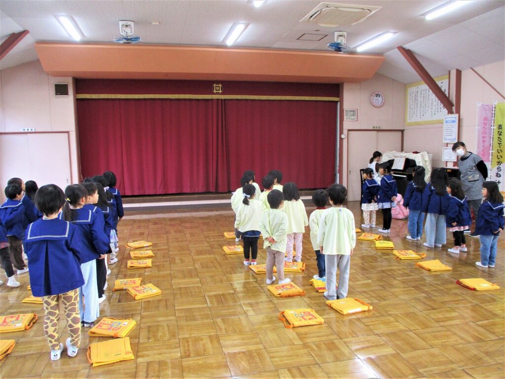 23日、二学期の終業式を行い、園歌を歌ったり、冬休みについての話を聞いたりしました。二学期には、運動会、遠足、保育参観、園外散歩等、たくさんの行事を経験した子どもたち。また、みずほ台幼稚園との合同保育も経験し、さまざまな活動が素敵な思い出として、子どもたちの心に刻み込まれたことでしょう。