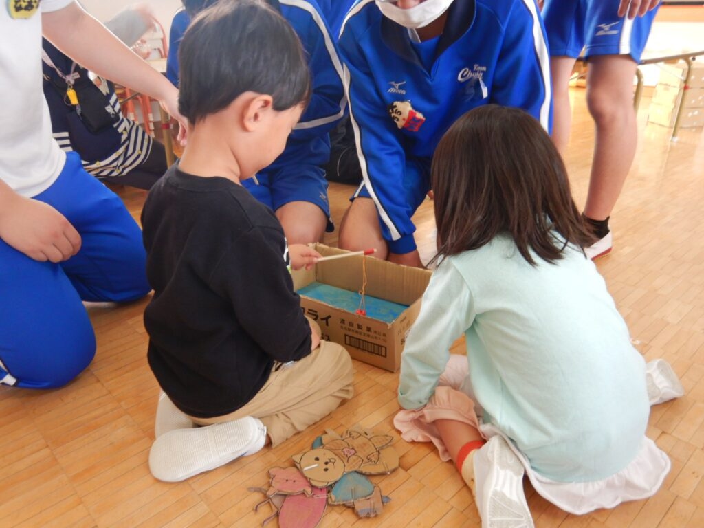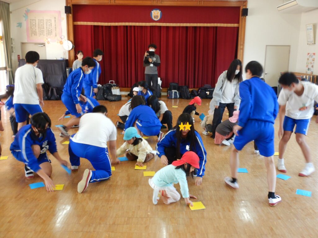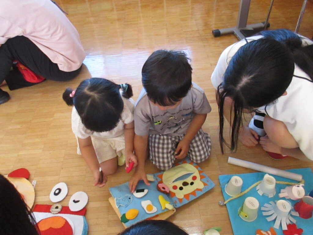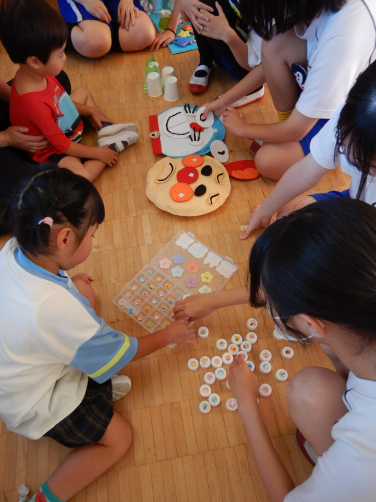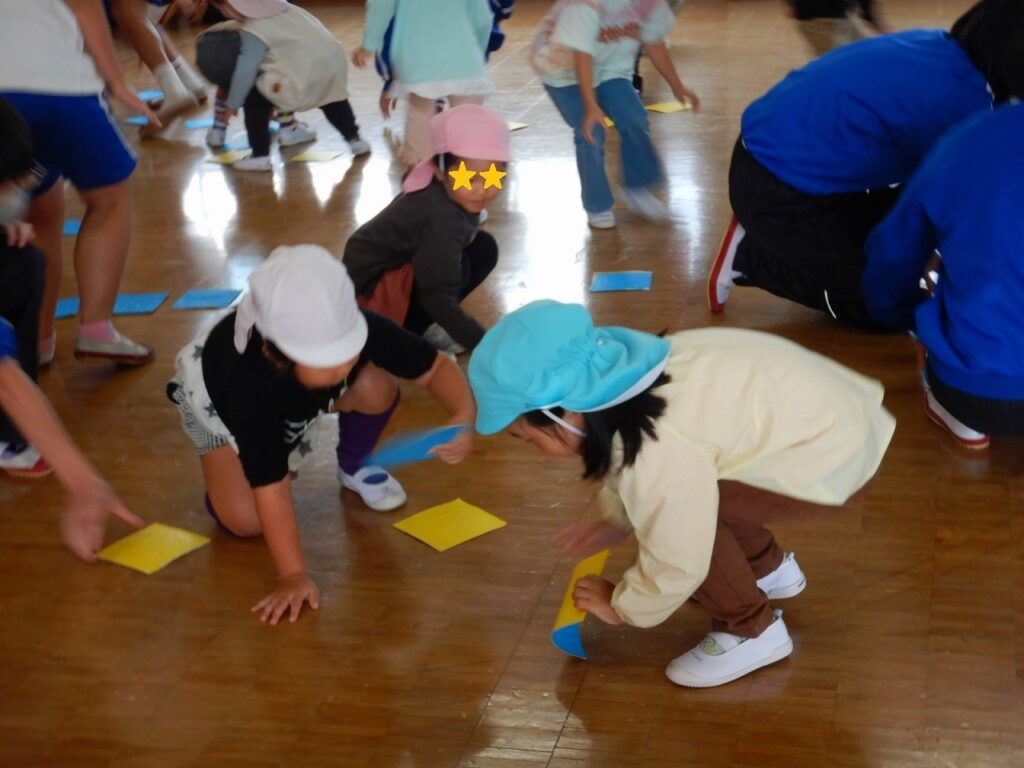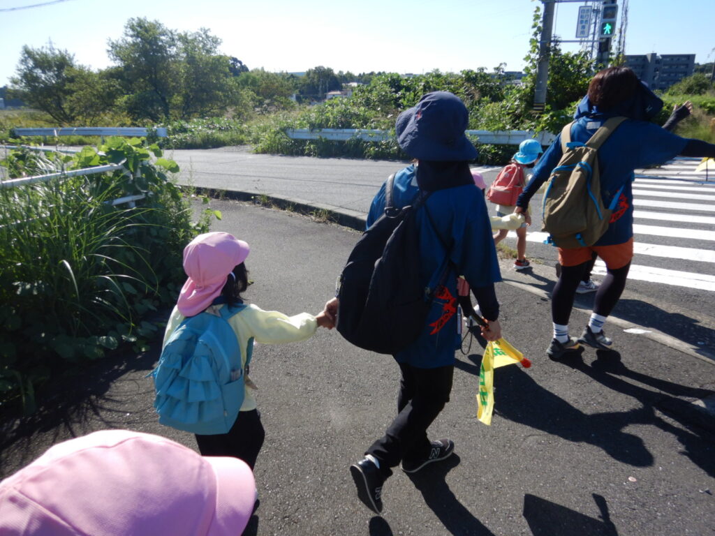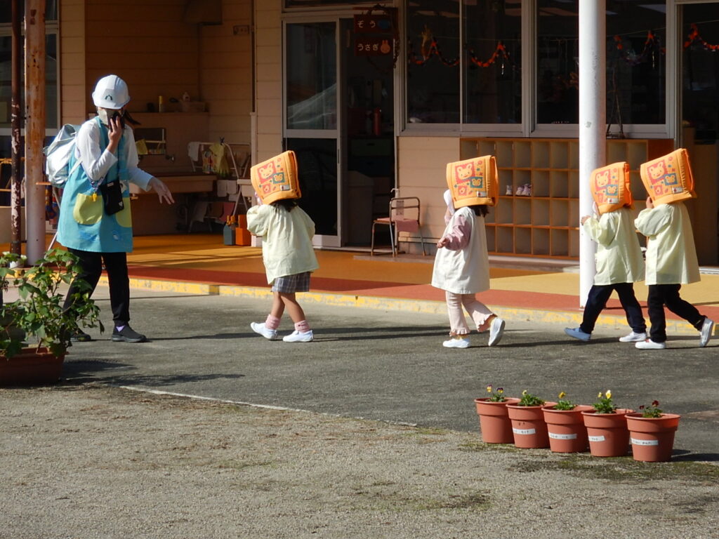 職員室の湯沸かし室から火が出たという設定で、避難訓練を行いました。先生の話をきき、煙を吸わないように口にハンカチを当て、体を低くしながら素早く避難できました。落ち着いた避難の様子を消防士さんからも、ほめていただきました。女性消防団の方々のぺープサートや、消防車や救急車を実際に見せてもらい、消防士さんからのお話を聞きました。子どもたちから「これは何に使うの?」「どうやって動くの?」などと質問が飛び、その度に優しく丁寧に答えていただき、ありがとうございました。本物の消火用ホースを持たせてもらって放水体験もでき、貴重な一日となりました。