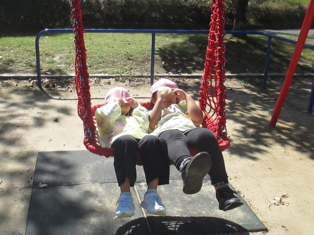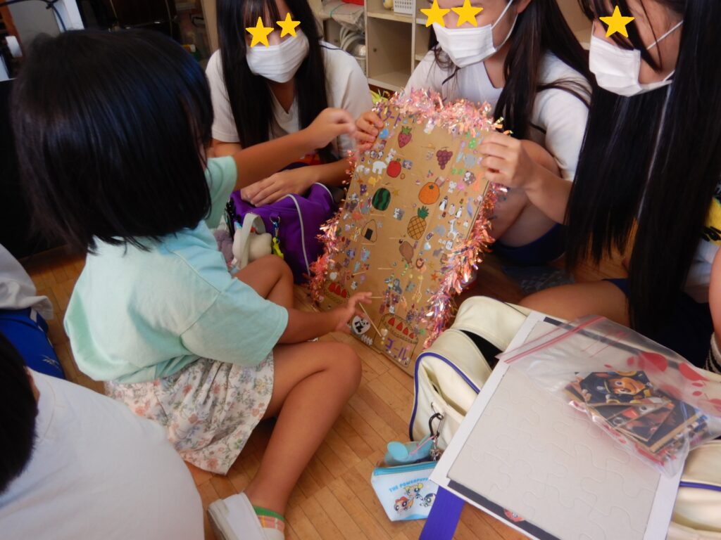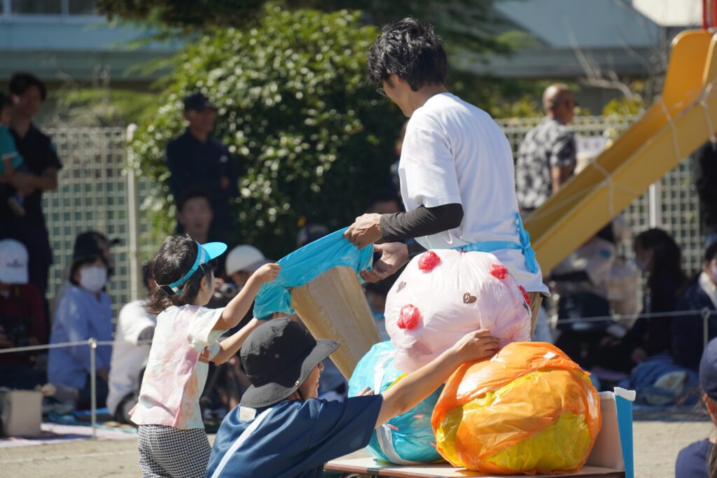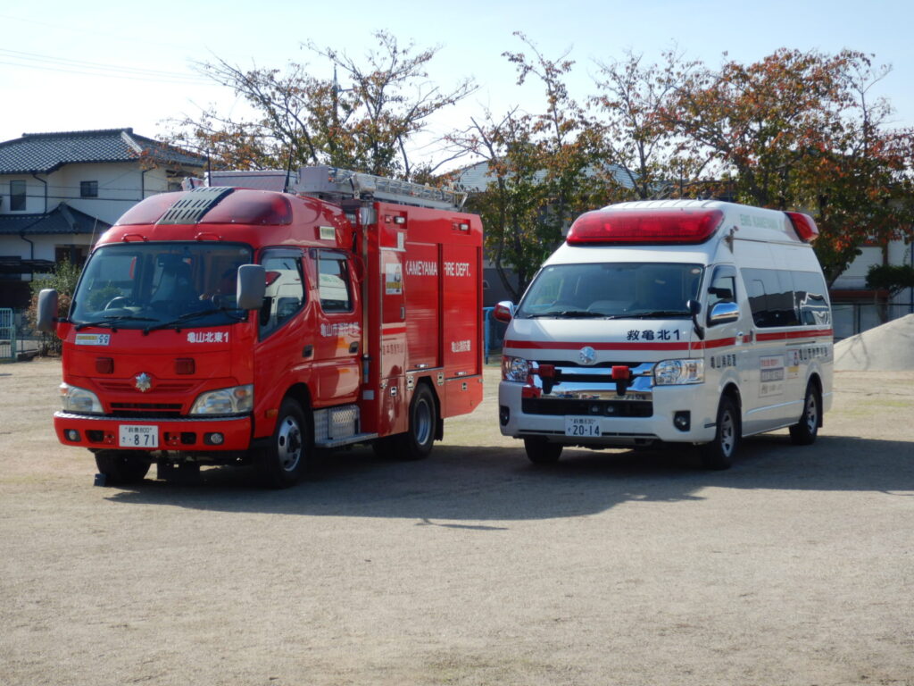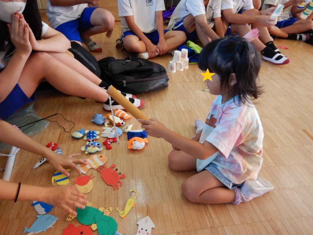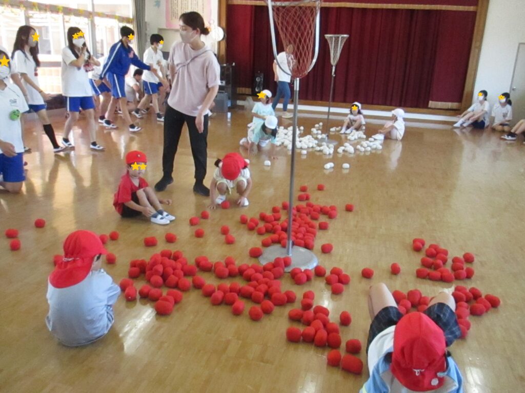 職員室の湯沸かし室から火が出たという設定で、避難訓練を行いました。先生の話をきき、煙を吸わないように口にハンカチを当て、体を低くしながら素早く避難できました。落ち着いた避難の様子を消防士さんからも、ほめていただきました。女性消防団の方々のぺープサートや、消防車や救急車を実際に見せてもらい、消防士さんからのお話を聞きました。子どもたちから「これは何に使うの?」「どうやって動くの?」などと質問が飛び、その度に優しく丁寧に答えていただき、ありがとうございました。本物の消火用ホースを持たせてもらって放水体験もでき、貴重な一日となりました。